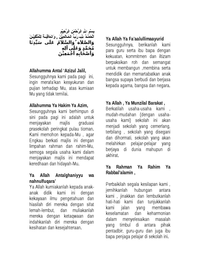 32508 lines 32507 with data 2603 kB. Bacaan Doa Hadirin yang dimuliakan Bagi memberkati majlis kita yang penuh bermakna pada hari ini marilah kita sama-sama menadah tangan mengaminkan bacaan doa yang akan dibacakan oleh_____.
